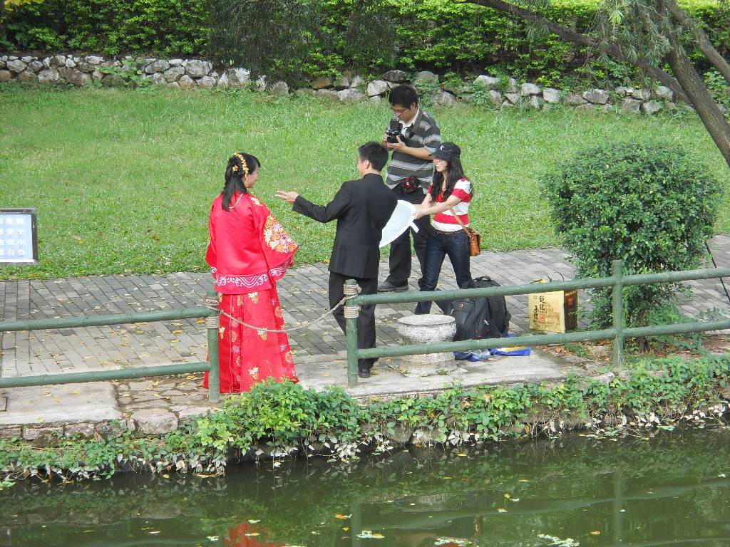 We had lunch in the old museum garden downtown, a quiet retreat from the surrounding busy city. The restaurant is in a traditional "wind and rain" covered wooden bridge, and the garden is a favorite spot for couples to get wedding photos.